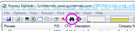 MS Windows File “is being used by another process.” Posted on May 16, 2016 by alochbaum Using Sysinternal to Find Program Start the Process Explorer tool and click on the Search icon; shown in image below; After you type in name of folder or file in search box you see the programs, in this case it is MS Word (WINWORD.EXE).